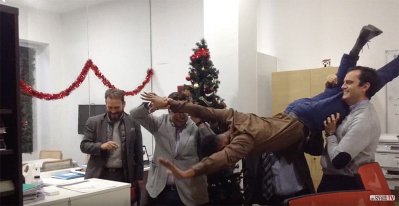 Sí, esto pasó en nuestras oficinas, desde donde os enviamos a todos un fuerte abrazo y os agradecemos este maravilloso año a nuestro lado. Que lo disfrutéis…