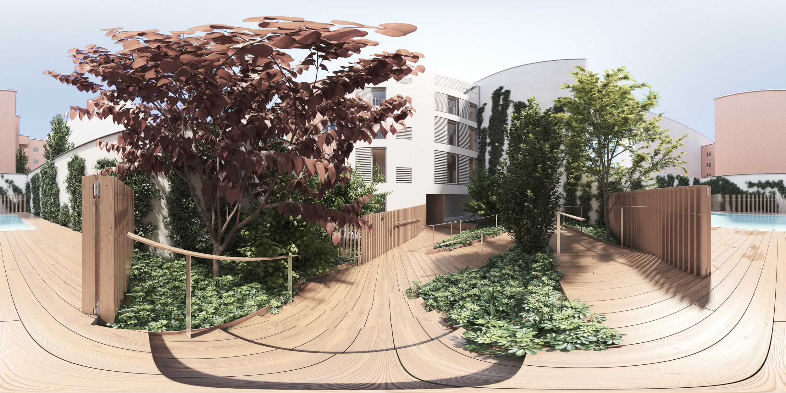 Todas las viviendas tienen vistas tanto a la fachada delantera en la calle Ángel González Tejedor como al jardín. Está ubicado a 30 metros de la parada de metro del Carmen y muy cerca de la Plaza de Toros de Las Ventas.